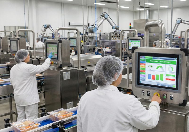 Supervisors and operations teams monitor throughput, alarms, KPIs, and escalation paths with displays optimized for distance and continuous attention windows.