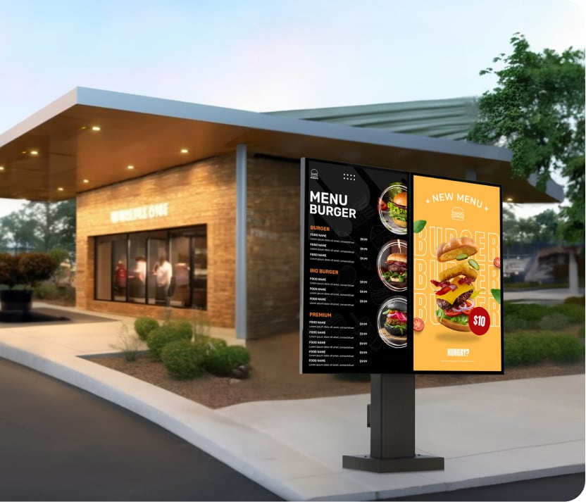 Sunlight-readable outdoor displays, built for drive-thru speed and all-weather uptime.