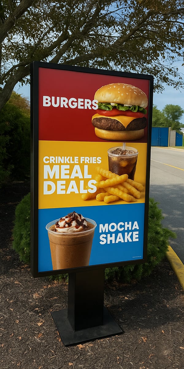 Very highGeneric outdoor displays can fade in direct sun, slowing menu scanning and reducing conversion during peak volumes.
